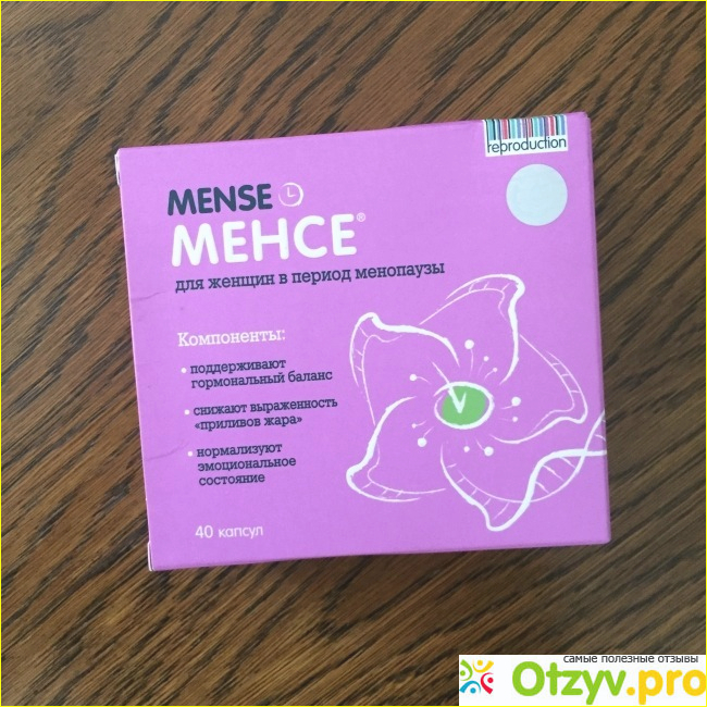 Я уже даже была готова принимать гормональные препараты, но решила для начала попробовать что-то более щадящее для организма и по совету подруги, которая также вошла в период менопаузы, купила упаковку Менсе. Упаковка менсе приятного лилового цвета, в каждой упаковке блистеры с капсулами, по 40 капсул в упаковке.