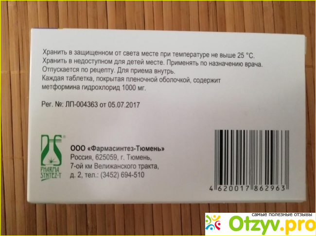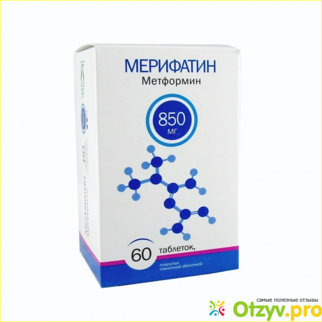 Одним из первых и главных лекарственных препаратов для лечения сахарного диабета является активное вещество метформин, он также входит в список жизненно важных лекарственных средств. Метформин входит в состав препарата Мерифатин, в данном случае представлены таблетки покрытые пленочной оболочкой в дозировке по 1000 мг. Он является препаратом первого класса сахароснижающей категории для снижения уровня глюкозы в крови, ожирения и гипергликемии натощак.