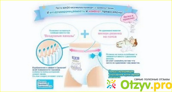 Вся лишняя влага успешно выводится через дышащий слой, что исключает опрелости и раздражения, защитный слой хорошо удерживает влагу благодаря тому, что расположен равномерно по подгузнику, а также трусики имеют индикатор наполненности - не надо лишний раз снимать трусики и смотреть все ли в порядке, достаточно взглянуть на индикатор, который меняет цвет, и все станет понятно. Вместе с тем, они очень тоненькие, а при использовании ночью можно не вставать и не проверять ребенка - их хватает до утра. Преимуществом трусиков над обычными подгузниками я еще считаю то, что у них нет липучек, которые старшенькие детки так и норовят расстегивать. Чтобы снять трусики, их можно или просто стянуть, или разорвать боковой шов. Кстати, использованные трусики закрепляются лентой для утилизации.