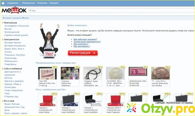 Итак, Мешок - это интернет аукцион, где Вы можете совершать выгодные покупки. Здесь же можно поучаствовать в различных аукционах. Для поиска товаров надо использовать разделы слева и строку поиска. Ничего сложного нет!