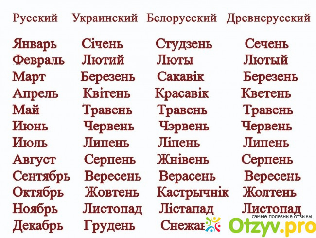 Ну вот и закончили с месяцами. Думаю, мне удалось вам преподнести информацию в полной мере, а заодно и сама я повторила их название. Если интересно, могу пройти еще по дням недели, ведь их название так же несколько отличаются от русских:
