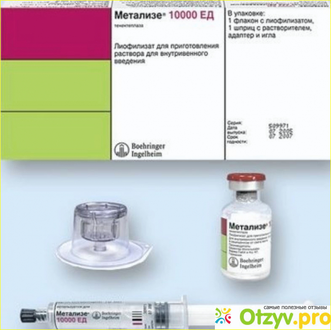 Метализе представляет собой эффективное средство, которое является рекомбинантным, его получают из природных тканевых активаторов, так как происходит изменение структуры белков в определенных местах. Основное вещество данного средства это тенектеплаза, она начинает связываться непосредственно с тромбами и плазмоген, который с этим тромбом связан, превращается в плазмин. Именно благодаря ему и расщепляется основа тромба.
