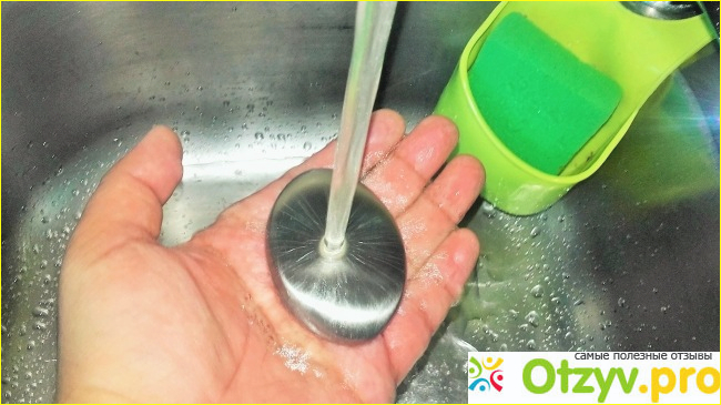 Дабы убедиться в работоспособности покупки замазал руки кашицей из свежевыжатого лука и чеснока. Сначала ароматы решил вывести обычными средствами типа Fairy и прочими бытовыми химикатами. Ничего не получилось. Руки воняли в диаметре километр. Затем настала очередь стального средства.