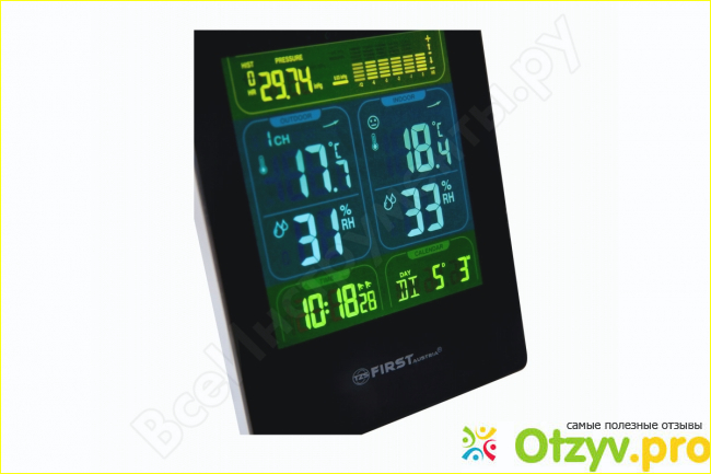 Давно хотела купить метеостанцию, но все не могла определиться с моделью. Дорогой вариант я изначально не рассматривала, а дешевые приборы не корректно выдавали значения. И пересмотре различные варианты я решила остановить выбор на модели First 2460-3. Прибор действительно оказался отличного качества. Он выдает все показания четко, экран достаточно хорошо просматривается и батарейки менять приходится не часто. Я очень довольна своим выбором. Конечно можно найти варианты с большим количеством функций, но мне они не нужны . А за свою стоимость метеостанция просто чудесная.