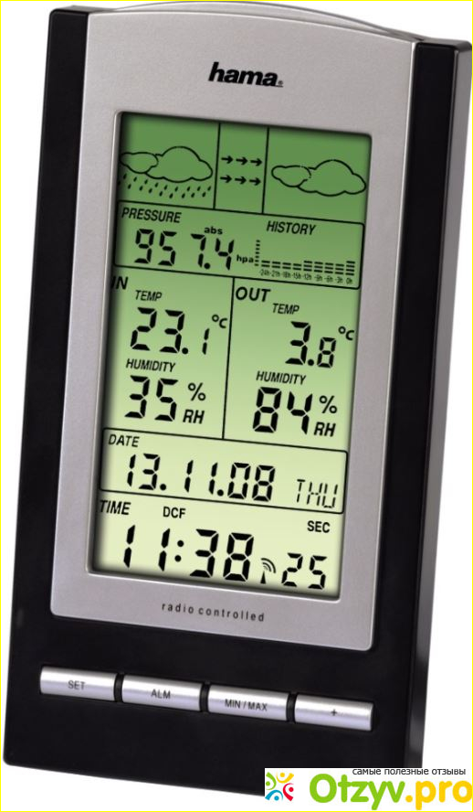 - для цифрового мониторинга погоды с радиоуправляемыми часами