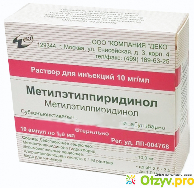 Показаний на самом деле очень много, там целый список, поэтому все здесь перечислить не возможно. Но Метилэтилпиридинол рекомендован в качестве лечебного средства и ангиопротектора при внутриглазных кровоизлияниях, диабетической ангиоретинопатии, при осложнениях миопии, отслойке сосудистой оболочки после операции, травмы и ожоги роговицы, для лечения поражений сетчатки глаза и так далее. Для лечения острого панкреатита, геморрагического инсульта, черепно мозговых травмах, ушибы мозга, хроническая недостаточность кровообращения мозга, гематомы мозга, профилактика и лечение нестабильной стенокардии, острого инфаркта миокарда, ишемический инсульт и тому подобное.