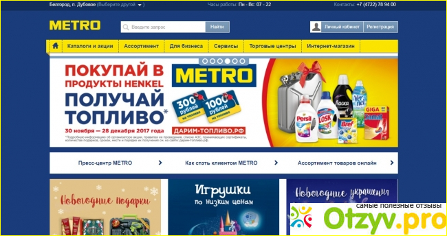Также на сайте можно посмотреть каталоги и акции, ассортимент, предложение для бизнеса, сервисы и интернет-магазин.