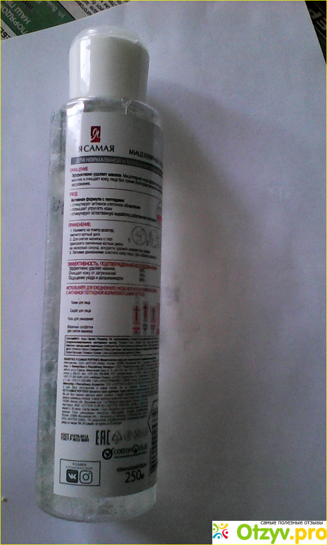 Не так давно я открыла для себя мицеллярную воду, всё время смотрела на разнообразие этого средства на полках в магазинах, но покупать не решалась. Мой выбор пал на известную марку "Я самая", цена не показалась мне высокой, а это 135 рублей, в итоге симпатичный флакон поселился на моём туалетном столике.