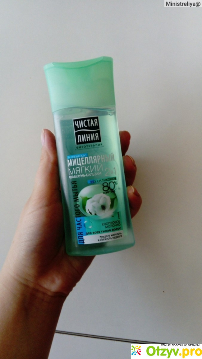 Некоторые покупатели не особенно любят тратятся на средства по уходу за волосами и выбирают такие товары, как два или три в одном. Например, когда шампунь и бальзам находятся в одном флаконе. Чистая линия в линейке мицеллярных средств тоже выпустила подобное средство. Оно так и называется мягкий мицеллярный шампунь-бальзам для волос.