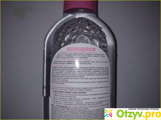 В первую очередь я рада, что у этой мицелярной воды нет отдушки и что она прозрачная. Также меня устроил и объем флакона 400 миллилитров, если учесть, что я пользуюсь ею ежедневно, то экономичность для меня важна.