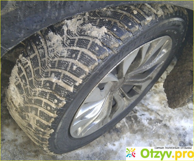 Когда температура на улице уменьшается, шины твердеют и как бы выдавливают из себя шипы, что заставляет их буквально впиваться в лед, что позволяет, уверено ехать даже по чистому льду.
