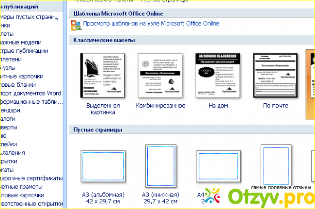 - размеры пустых страниц – здесь можно найти любой размер страницы, изменить ориентацию страницы и цветовую гамму. Если люди более продвинуты в понимании этой программы, то чаще всего пользуются именно этой функцией, потому что на пустой странице можно создать всё, что только душа пожелает, лишь бы навыков хватало;