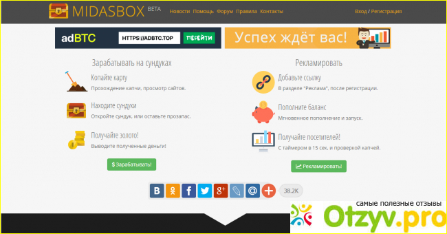 Речь идет о сайте Midasbox net, который помогает зарабатывать играючи! Вообще, по сути, данный проект является рекламной лотереей. Основную прибыть он зарабатывает на деньги работодателей, которые размещают на нем свою рекламу. Так что, чтобы иметь возможность принять участие в лотерее, необходимо будет на этом сайт отключать как свой любимы адблок, так и антибаннер. Но это не так и страшно. Тем более плюс для тех, кто ищет возможность, чтобы разместить свою рекламу: на сервисе Midasbox net ее всегда увидят все посетители!