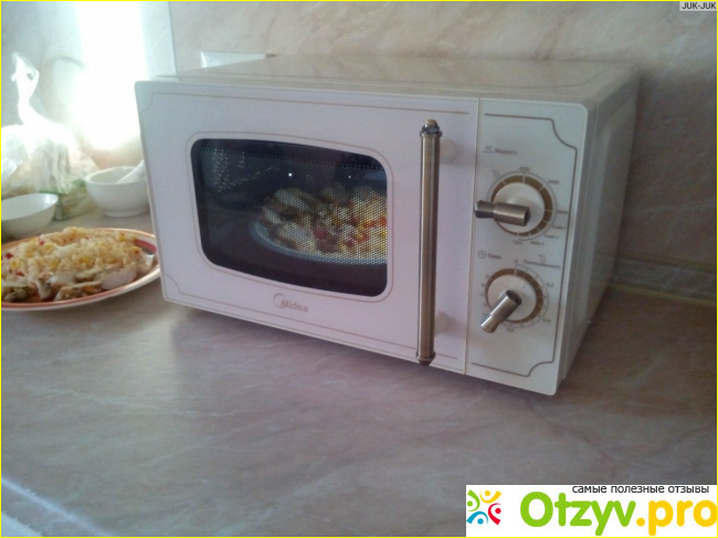 Я давно хотела купить себе новую микроволновую печку. Причем мне хотелось выбрать ее в каком-то интересном и необычном дизайне. Когда я увидела в магазине печку Midea mg820cj7 i1, то она мне сразу же понравилась. У нее такой необычный и интересный внешний вид, что пройти мимо просто не возможно. Цена конечно для меня не много кусалась, но я все равно ее купила и теперь не жалею об этом. Все кто ко мне приходят, сразу же обращают внимание на эту делать на моей кухне. Смотрится прибор интересно, стильно и необычно. Управление в ней на столько простое, что не нужно даже читать инструкцию. В общем я такому приобретению безумно рада.