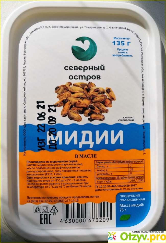 Но есть одна загвоздка. Количества в баночке маловато, моллюсков всего 135 гр. Сделано из мороженного сырья, но по вкусовым качествам я этого не заметила. Изготавливаются в Ростовской области ООО "Два капитана". В составе, помимо основного продукта масло подсолнечное, соль и пара консервантов-сорбат калия и бензоат натрия.