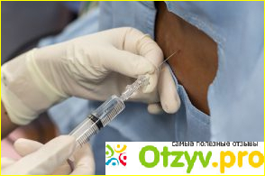 Человек ложится на кушетку, на спину. Ему проводят местную анестезию и начинают забор жидкости. Глубина иглы контролируется доктором при помощи специального диска.