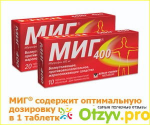 Но действующее вещество препарата МИГ 400 - ИБУПРОФЕН (а в аптеке продаются таблетки с таким названием) принцип у них действия такой же, но ЦЕНА в 2 раза ниже.