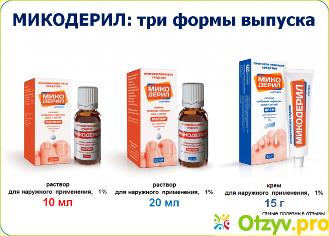 Благодаря такому обширному действию активного вещества, препарат Микодерил используется для лечения различных грибковых поражений кожи. Это средство направленно на лечение грибов, которые проявляются конкретно наружно.