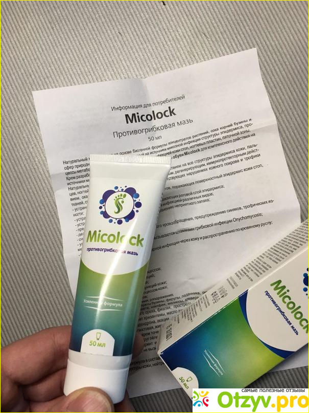 Я решила заказать на официальном сайте мазь Миколок, в составе которой только натуральные вещества. Сюда входит аквамарин, мускус бобра, мумиё, пчелиный прополис, мята, чистотел. Производитель уверяет, что мазь быстро успокаивает воспалённую кожу, уничтожает клетки грибка, устраняет зуд, заживляет трещины, подсушивает раны. Кроме этого средство оказывает охлаждающее действие, успокаивает боль.