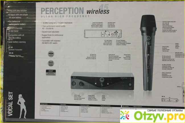 Микрофон AKG Perception Wireless 45 Vocal Set BD-A (530-560) - в моей эксплуатации, находится уже более 2-х лет. Радио - микрофон классической формы, чёрный, лёгкий, удобный в работе.