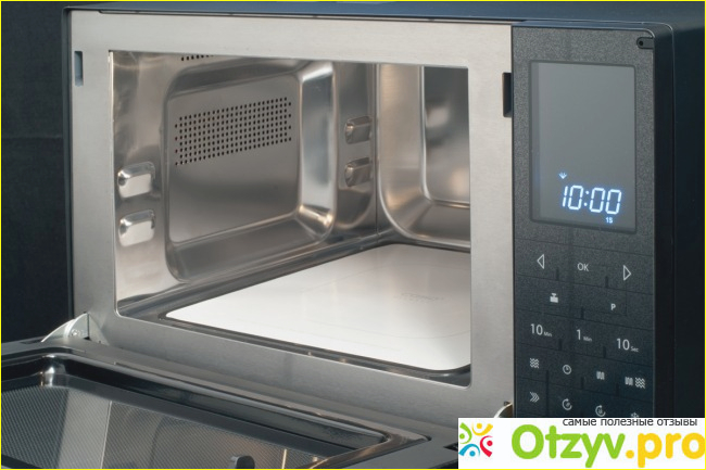 Общее количество программ такого вот самого автоматического приготовления здесь заложено ровно десять штук. По окончании любого приготовления, в конце микроволновая печь даёт звуковой сигнал. Это в принципе есть не только в данной модели, но и в во всех без исключения микроволновых машинках, даже самых дешёвых, насколько я знаю. Внутри данная микроволновая печь довольно симпатичная и просторная, материал же покрытия - нержавейка, что мне кажется идеальным конкретно для микроволновой печи.