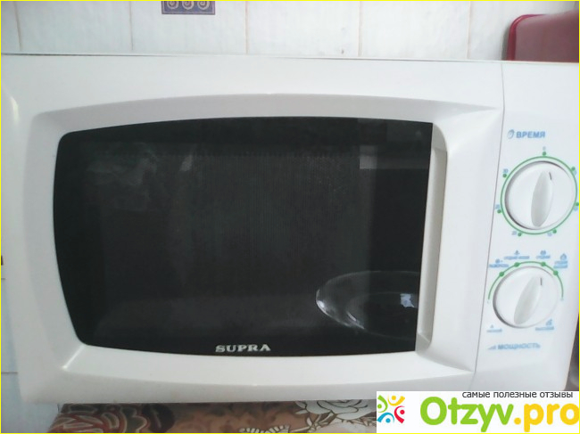 На микроволновке Supra всего лишь два переключателя – таймер (до 30 минут) и температура. Правда, температура в градусах не указана, а просто написано – низкий, разморозка, средний низкий, средний, средний высокий и высокий. Но это очень даже удобно. Кстати, разморозка работает не очень хорошо. Пробовала я разморозить фарш, так он снизу припекся, а внутри вообще не растаял. Но на крайняк сгодится.