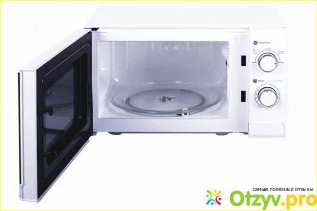 Внутри микроволновки находится чаша, которая сделана со стекла. Она качественная, выдерживает большую температуру. Ее диаметр составляет 255 мм.