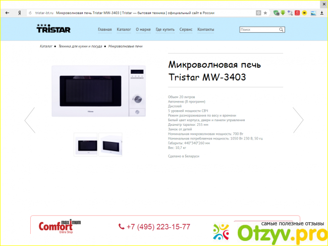 Кроме того из положительных качеств отмечу и то, что микроволновая печь Tristar MW 3403 обладает достаточной вместимостью рабочей камеры – 20 литров, так что в ней можно расположить все, что угодно.