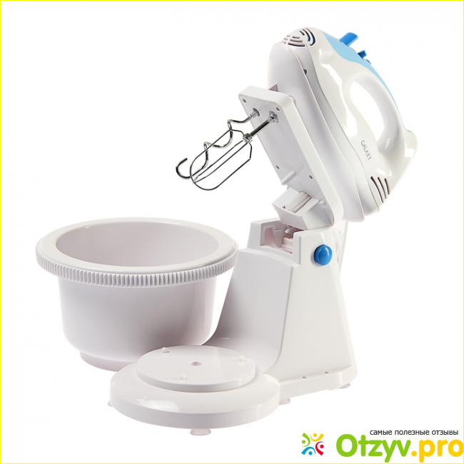 А вот стационарные модели, как наш герой Galaxy GL 2204 «Мастер плюс» обладает всеми необходимыми техническими параметрами и качествами, помимо самого миксера, здесь есть также емкостная чаша для смешивания и взбивания, подставка, которая удерживает эту чашу во время процесса. Именно благодаря своей стационарной категории он освобождает руки при готовке, а в это время можно заниматься другими делами. Стационарный миксер имеет две насадки, и поэтому есть возможность выполнять несколько операций одновременно.