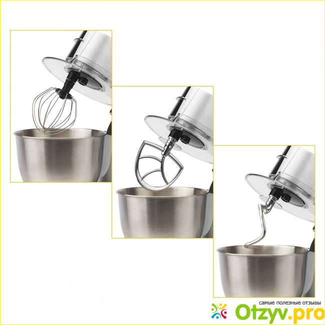 Этот миксер имеет несомненное превосходство по сравнению с другими устройствами для кухни, так как его возможности несравненно шире. При помощи планетарного миксера можно осуществлять следующие действия: