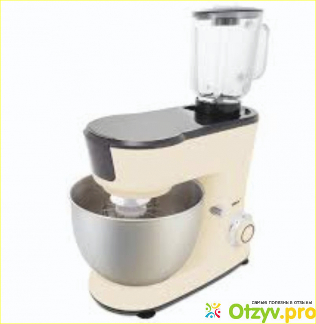 В комплекте данного прибора имеются все насадки, которые необходимы для его отличной работы - венчик, который поможет взбивать; насадка, при помощи которой можно замешивать тесто; насадка-блендер, которая имеет объем 4,5 л; насадка-мясорубка, имеющая три решетки металлических, чтобы можно было готовить фарш различного помола.