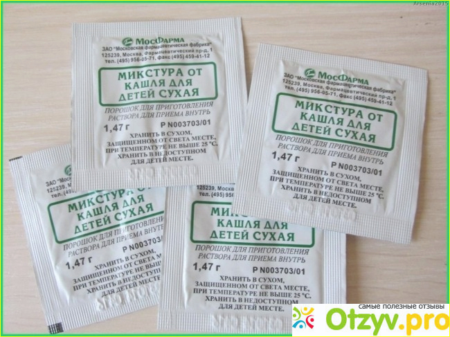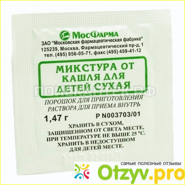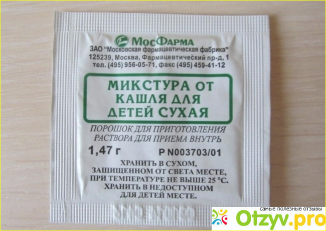 Сама микстура от кашля продается в виде порошка, который нужно предварительно растворить с водой и уже давать в готовом виде. Данная микстура является очень хорошим отхаркивающим средством, по этому ее следует давать ребенку когда у него очень плохо отходит мокрота. При этому эту микстуру не следует давать с любыми другими отхаркивающими средствами.