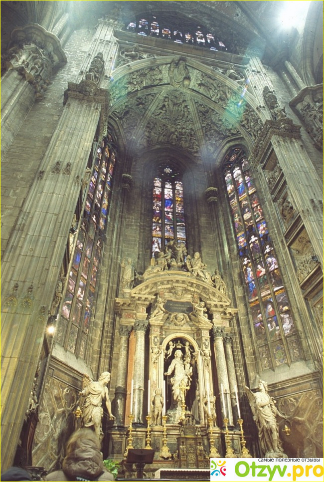 Кафедральный собор, это пожалуй, самая главная достопримечательность Милана. Постройка радует взор необычной архитектурой. Собор состоит избашенок, статуй святых, библейских изображений, есть статуи необычных существ, например горгулий. Самая главная статуя, что возвышается над другими - дева Мария, что покровительствует этому городу. Интересно, что все выполнено из белого мрамора в готическом стиле.