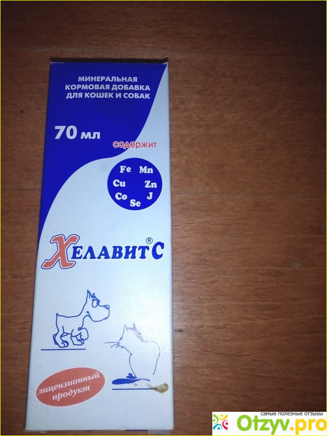 Боясь за явно ухудшающее состояния питомца , я конечно побежала в ветеринарную клинику за консультацией. Объяснив девушке ситуацию, то что подозреваю что это иммунодефицит и авитаминоз после чумки, она посоветовала мне приобрести кормовую добавку Хелавит. Она сказала что дает все своим пациентам-питомцам именно эту добавку так как считает ее самой эффективной, и посоветовала купить мне большую упаковку в 70 мл, дабы хватило на насколько сезонов, так как случай тяжелый.(надо уточнить что моя собака еще и жутко облиняла, чуть ли не до лысости) В общем давала я собаке данное средство порядка месяца выполняя данную инструкцию по применению.