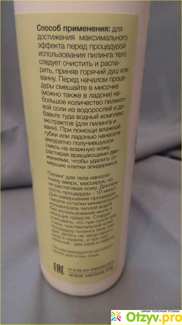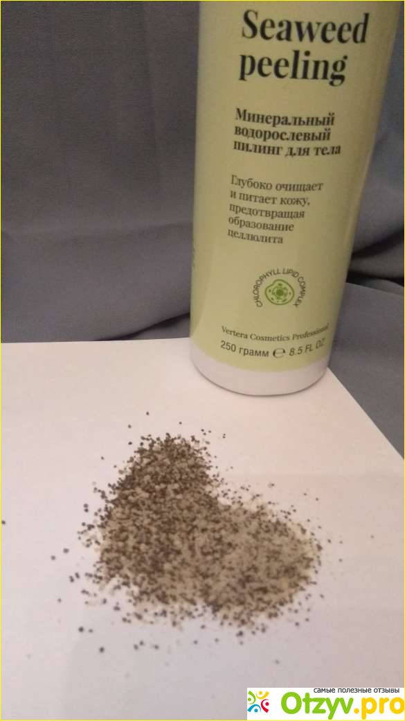 Пилинг Vertera по составу предельно прост и абсолютно натурален: морская соль фукус и ламинария, то есть водоросли и соль. Конечно за натуральный состав и цена у него повыше чем у многих химсредств, но здесь уж каждый выбирает сам – натур продукт без вреда для кожи в перспективе или то, что подешевле, но со временем может сказаться.