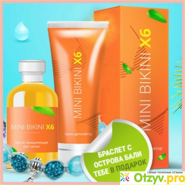 Mini bikini x6 - это уникальный комплекс, в который входит экстраординарное масло и крем-депилятор, который позволит не только быстро и легко избавиться от нежелательной растительности в любых зонах, но и надежно притормозить рост волос, что очень удобно.
