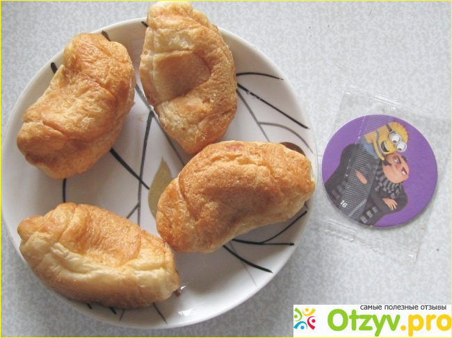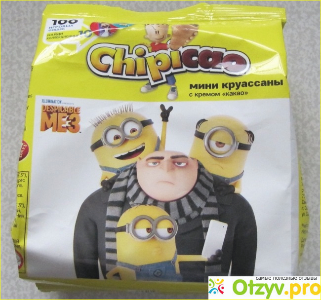 Так же там находится одна из 100 игровых фишек с изображением героев мультфильма "Гадкий Я 3". Собственно в ней-то все дело. Именно из-за нее полчища детишек просят у родителей купить им "круассанчики с миньонами".