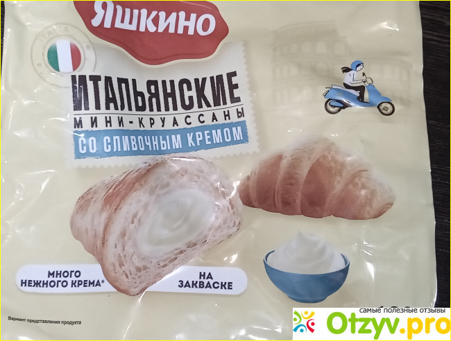 Ни так давно появились в продаже новые итальянские мини круассаны марки Яшкино. Упаковка оформлена в привычном формате, обещал производитель нежнейшее тесто и приличное количество крема.