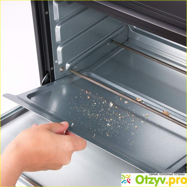 В плане обслуживания вопросов никаких нет. Безусловно всех хозяек раздражает жир, который остается на поверхности печи и на дверце. Отмывается все довольно просто, а удалить скопившиеся крошки в два счета - достаточно вынуть специальный поддон, который я отметил выше в комплектации. Во время работы не особо шумит, это также радует. По весу и габаритным размерам соответствует паспортным данным. Длина шнура достаточная, ну и собственно расположили мы его в углу, где у нас предусмотрена розетка.
