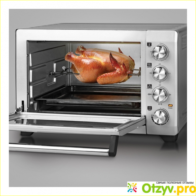 При выборе мини-печки очень важно обращать внимание на мощность прибора. Если мощности будет не достаточно. то тогда модель не сможет качественно выполнять свою задачу. А готовые блюда будут готовиться долго. Мощность в этом приборе составляет 1600 Вт. Это не самый высокий показатель. Но для домашнего использования такой мощности будет вполне достаточно. Даже для того, чтобы приготовить какие-то блюда на гриле.