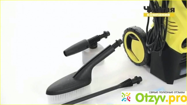 Итак, в оснащение минимойки Karcher K 3 EU входит: специальная трубка струйная Vario Power, пистолет обеспечивающий высокое давление, система быстрого и удобного подключения, фреза грязевая, шланг обеспечивающий высокое давление и имеет длину шесть метров, специальный встроенный бак для моющего средства, фильтр обеспечивающий тонкую очистку воды, специальный адаптер позволяющий подключать к садовому шлангу. Также в комплекте есть специально предусмотренный отсек, в котором очень легко и удобно хранить все принадлежности на самом корпусе машины.
