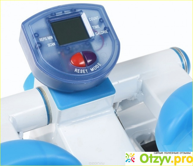 Теперь мне насколько удобно, не надо записываться в тренажёрный зал, платить деньги за тренировки, ожидать очередь к тренажеру, которых у нас немного, тратить невыгодное время для меня, для того чтобы держать себя в форме, а всего лишь в домашних условиях потренироваться когда удобно, не только утром и вечером. Но утром это настолько даёт бодрости и сил, что летишь после тренировок на работу. Этот мини степпер относится к кардио тренажерам, и это действительно так, потому что после тренировок по истечению длительного периода времени, незначительная аритмия которая меня иногда преследовала, сейчас не беспокоит, а значит работа моего сердца улучшилась. Максимальный вес с которым можно на нём заниматься составляет 100 кг, но благо мне до этого далеко. Мини копьютер работает от пальчиковых батареек. Кнопка Time - показывает время тренировки, Calorie - показывает количество потерянных калорий за время тренировок, Reps/min - показывает среднее количество шагов в минуту.