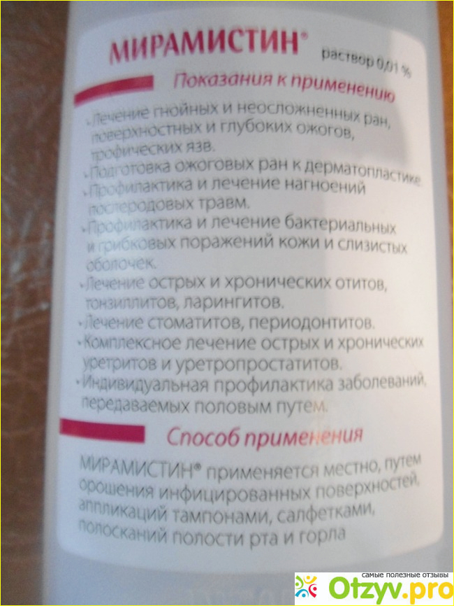 Комплектация Мирамистина выглядит так: обычный флакон и дозатор, который упакован отдельно. Инструкция по применению подробна и понятна.