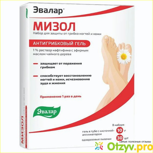 Мизол является фунгицидным препаратом, который используется в виде однопроцентного раствора для наружного применения. Защищает от грибковых поражений кожу и ногти. Также выпускается препарат в виде геля, к которому прилагается кисточка аппликатор, - здесь он используется совместно с маслом чайного дерева.