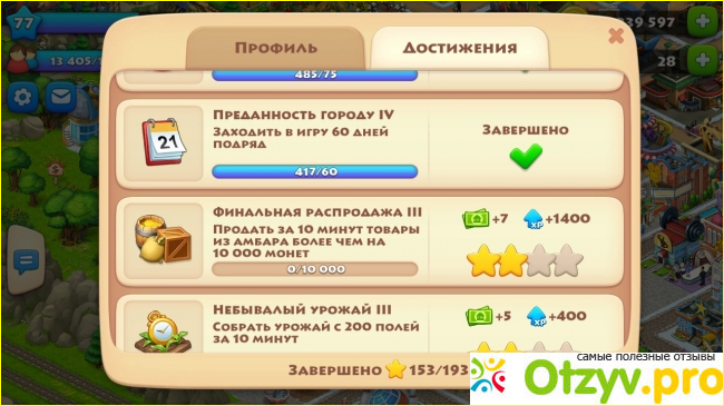 Скачала, начала играть и зависла больше чем на год. Ровно 417 дней я заходила сюда каждый день (видно по скриншоту ниже из достижений):