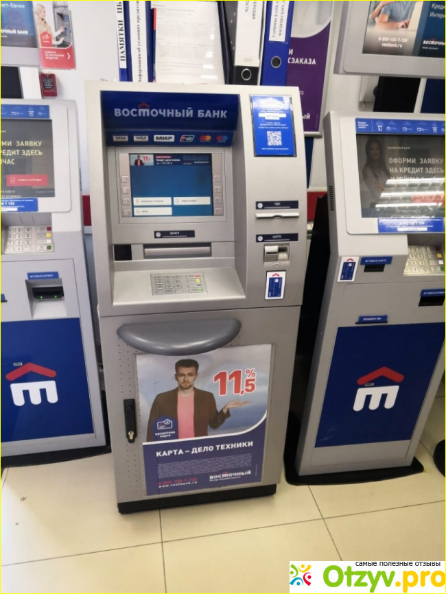 Судя по тому, что он имеет многомиллиардный капиталооборот, его успешность велика, он популярен в широких кругах и в его картотеке миллионы клиентов по всей территории России от Калининграда до Владивостока. Поэтому количество офисов, дополнительных отделений огромное множество и каждый человек имеет возможность посетить в своем городе их филиал и оформить себе любую услугу. Банкоматы также выставлены по всем городам, условия пользования ими узнавайте у сотрудников банка при оформлении договора. Но как мне известно, банк все-таки взимает некоторый процент за использование их услугами. Если вы используете карту от Восточный Экспресс Банк комиссия составляет от суммы. Если сторонними банками тогда увеличивается до 4,9% не менее 399 рублей за одну операцию.
