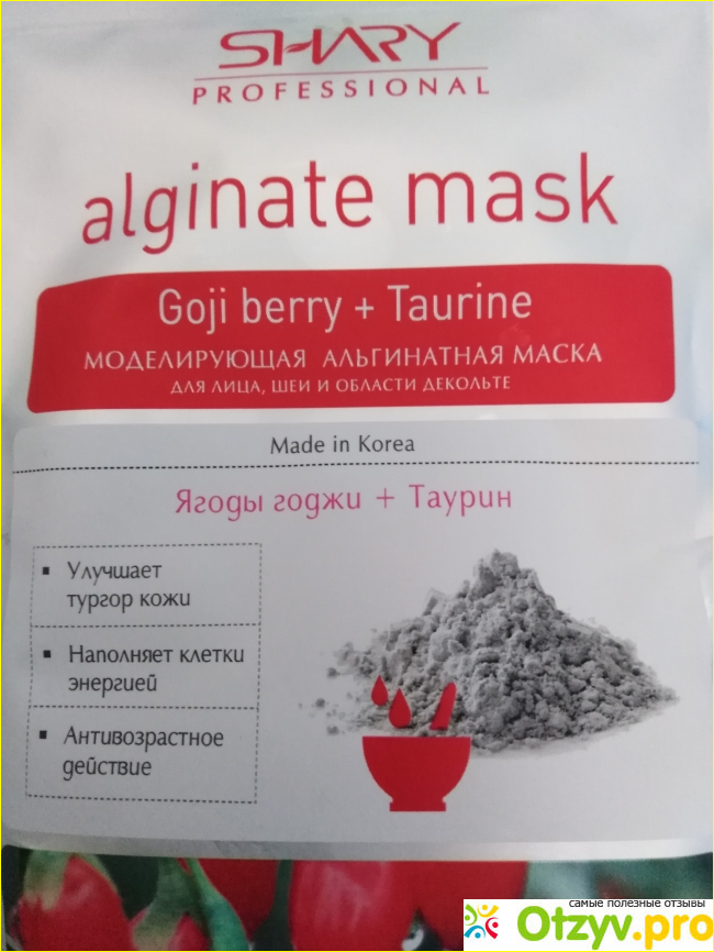 Выбрала для себя маску Ягоды годжи+Таурин-моделирующая альгинатная маска для лица, шеи и области декольте. На обороте было указано, что это профессиональная маска, придающая коже тонус и упругость. В инструкции по применении я узнала, что действие маски усилиться в несколько раз, если под неё нанести сыворотку той же фирмы.