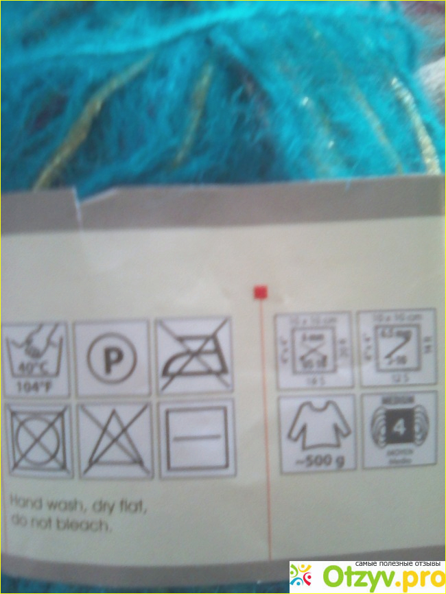 Получается красиво, так как блестит люрекс в изделии. На этикетке размещены еще рекомендации. Стирать при температуре 40 градусов, нельзя гладить и т. д. Вот эти рекомендации на фото:
