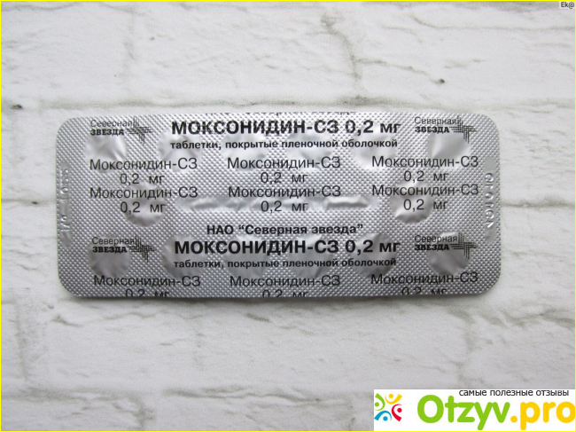 Действующим веществом является Моксонидин 0,2 или 0,4 мг, выпускается