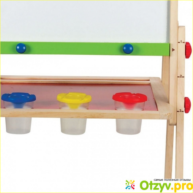 Магнитная поверхность предназначена для того, чтобы на ней что-либо закреплять: листы бумаги, картинки, наглядные пособия. Да, не удивляйтесь, многие мамы используют этот мольберт для детского творчества как вспомогательную площадку для обучения малыша счету и письму.